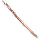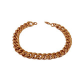 دستبند مسی زنجیری کارتیه نقش بافت، فری سایز و قفل دار ساخته می شود.