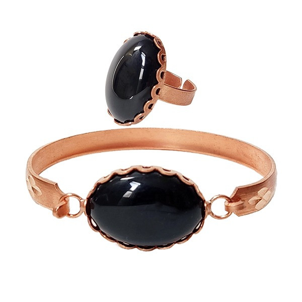 نیم ست دستبند و انگشتر مسی حلقه ای نگین دار سیاه