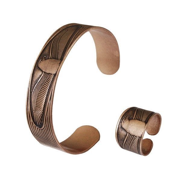 نیم ست دستبند انگشتر مسی پهن طرح عقاب
