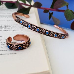 ست دستبند و انگشتر مسی مفتولی نگین دار شش گل