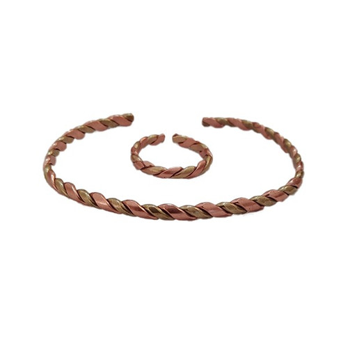 نیم ست دستبند و انگشتر مسی حلقه ای نگین دار سیاه