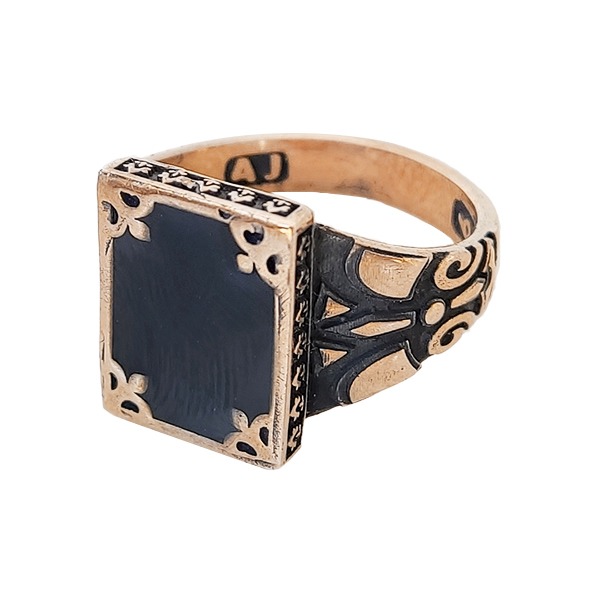انگشتر مردانه تک نگین مشکی طرح طلا روس