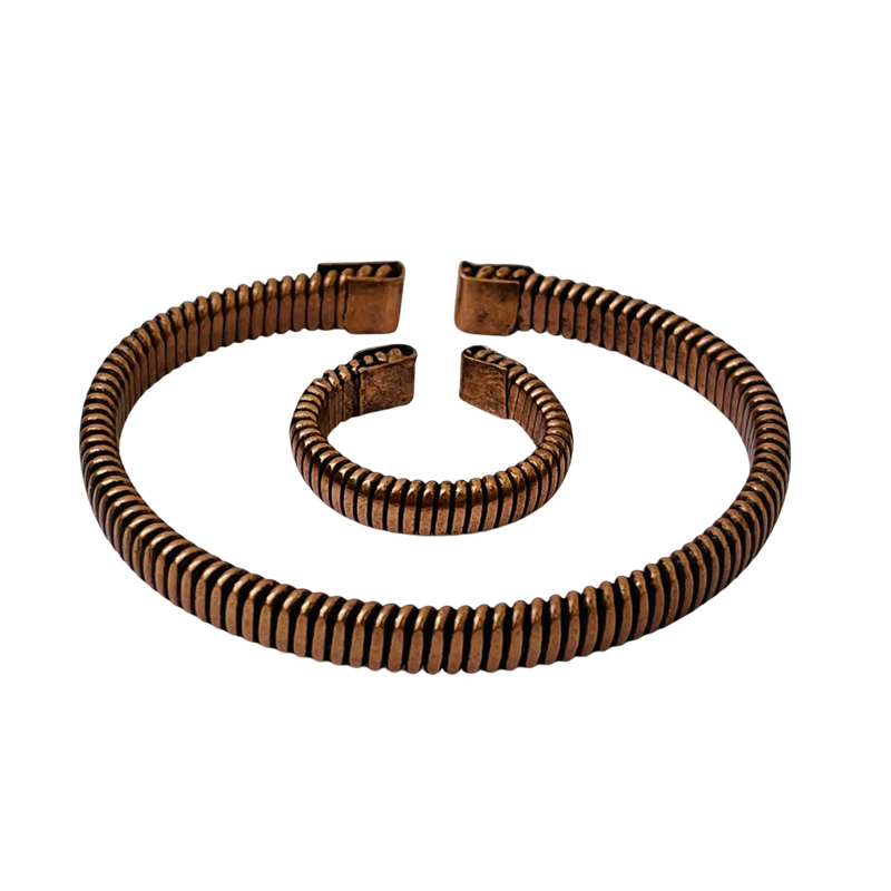 نیم ست دستبند و انگشتر مسی حلقه ای نگین دار سیاه