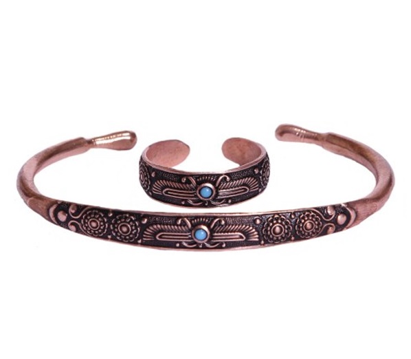 ست دستبند و انگشتر مسی راه راه خطی